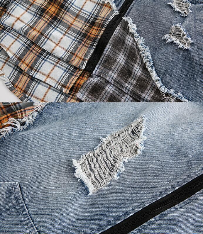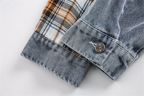 男 チェック ジャケット デニム パッチワーク スプライト ヴィンテージ