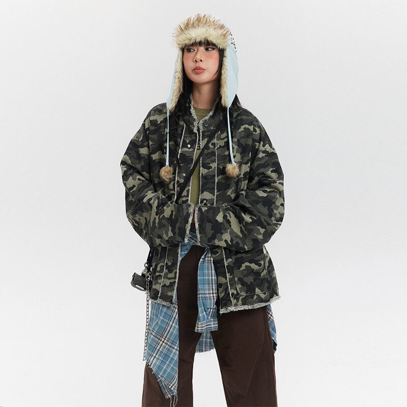 メンズ ヴィンテージ コート ファッション デニム 欧米風 カジュアル 迷彩