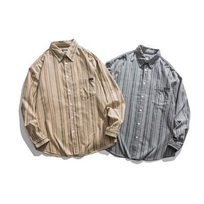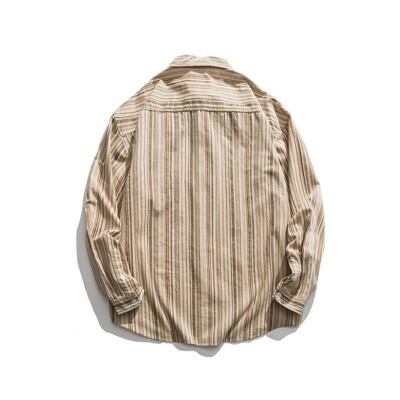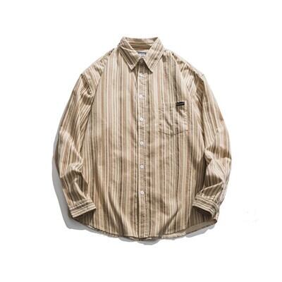 落ち着いたストライプ柄のロングスリーブシャツ。