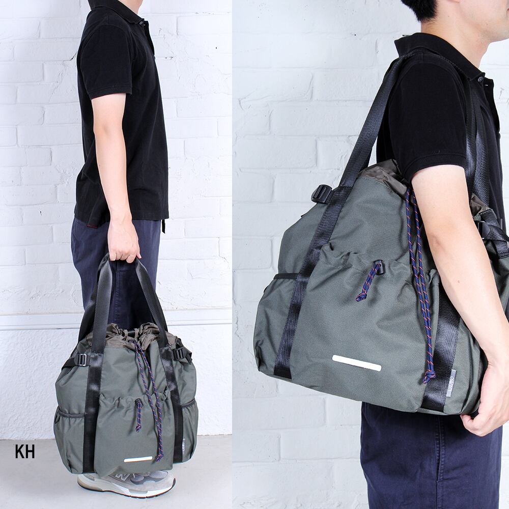 男女兼用ジェンダーレスに使えるトートバッグです。素材には撥水性が高く非常に発色の良い軽量ポリエステル素材を使用し、デイリーに使えるアイテムになっています。正面のポケットはくしゅっとしたデザインがカジュアル感を出していて、ティッシュやハンカチなど日常使いする荷物を出し入れするのに便利です。メインルームはドローコードとプラスチックのコードストッパーで開閉します。内装上部にはドローコードとカラビナがついているので、鍵関連や、定期ケースなども取り付け可能な便利仕様です。両サイドには、底にタック、上部にギャザーの入った収納力のあるアクセントにドローコードの付いた立体ポケットも付いています。発色が綺麗で軽く、撥水性にも優れた商品を是非お試しくださいませ。