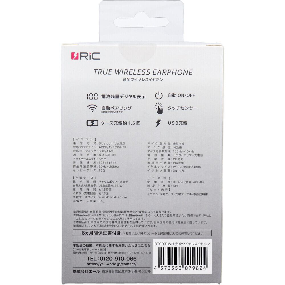 RiC 完全ワイヤレスイヤホン ホワイト BT0031WH